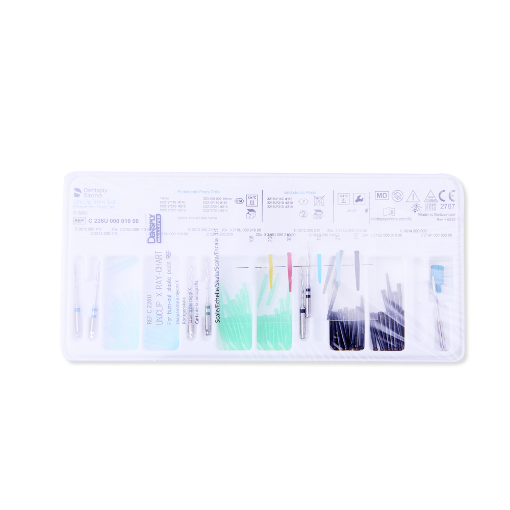 Startsæt med Uniclip udbrændingsstifter i 1 mm tykkelse, sæt med 3 størrelser og bor.