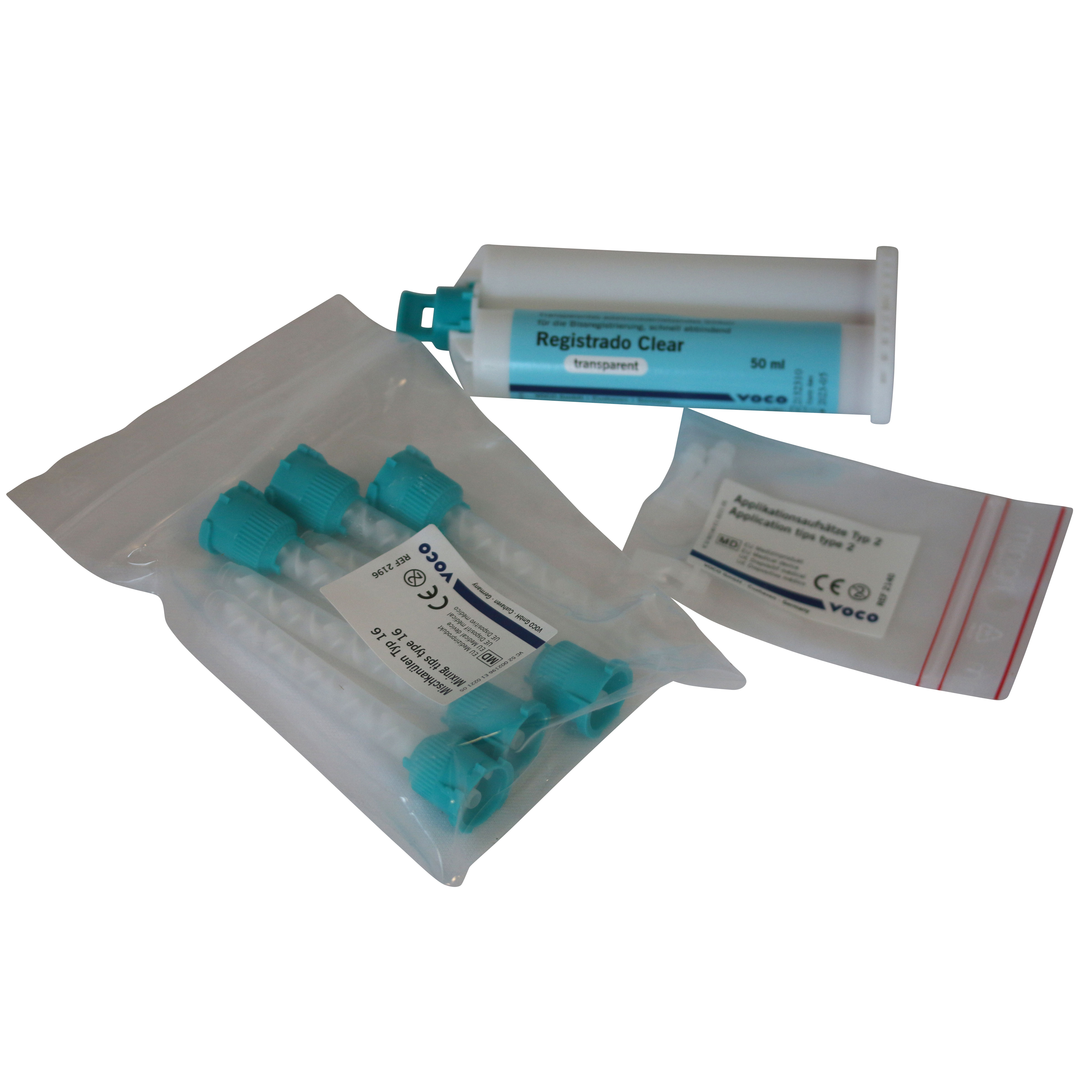 Transparent, kemisk hærdende silikone til bidregistrering, hurtig-afbindende, i 50 ml magasiner.