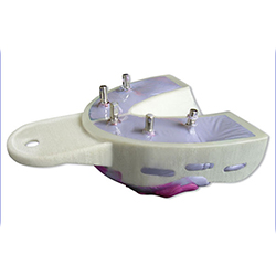 Engangsskeer i hård plast med tynd, klar plastbund til aftrykstagning i forbindelse med implantater, under aftrykstagningen trykkes aftrykstoppen igennem plastbunden og trækkes ud, lysegrå, L2 Medium til overkæben.