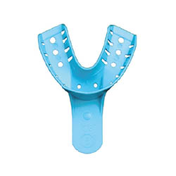 Perforerede engangs-aftryksskeer i plast til UK i str. lille, lyseblå.