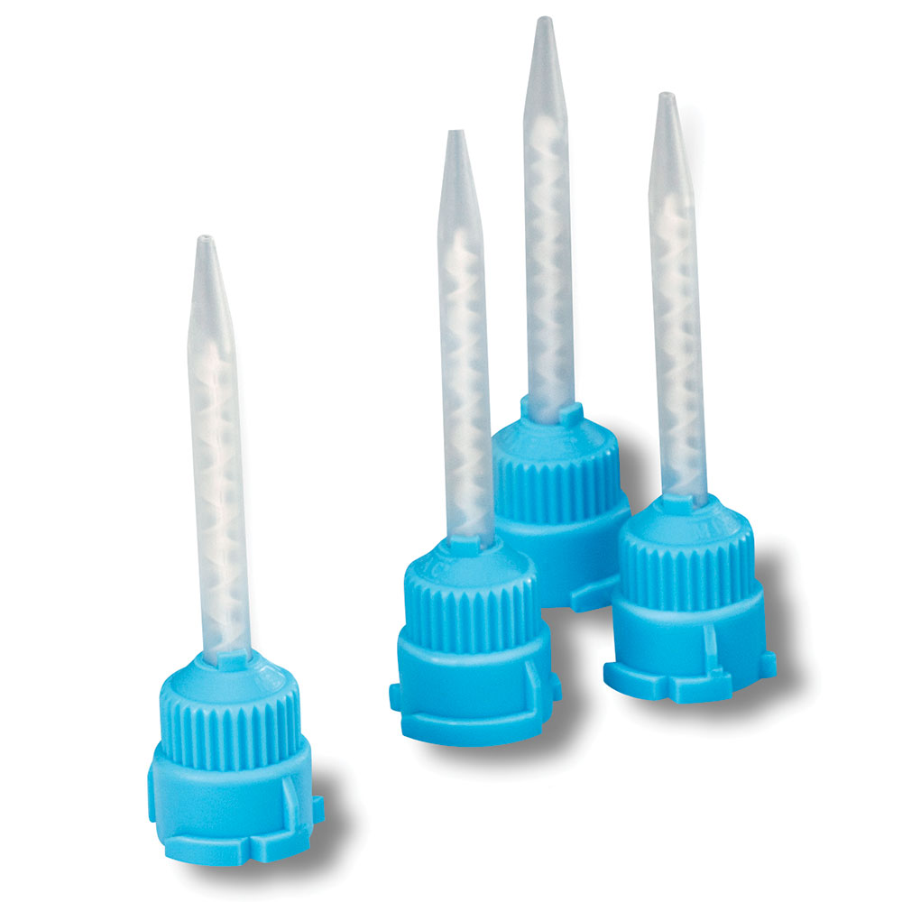 Blandespidser til TempoCem NE Automix med blåt gevind og hvid spiral, tilspidsede.