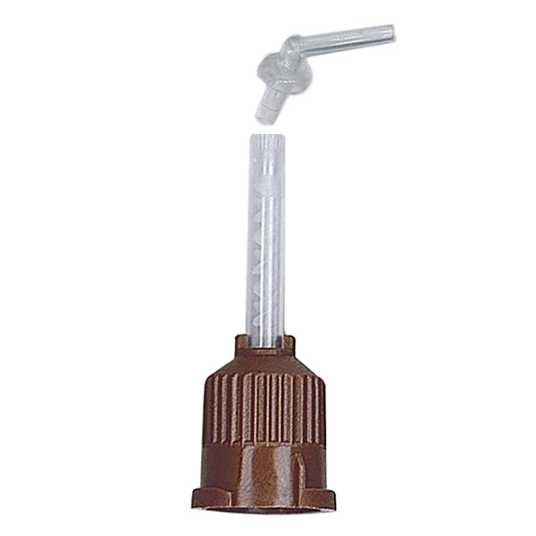 Blandespids med brunt gevind og hvid spiral, lige afskåret (længde 21 mm). Herpå sættes den medfølgende intraorale spids (længde 10 mm).