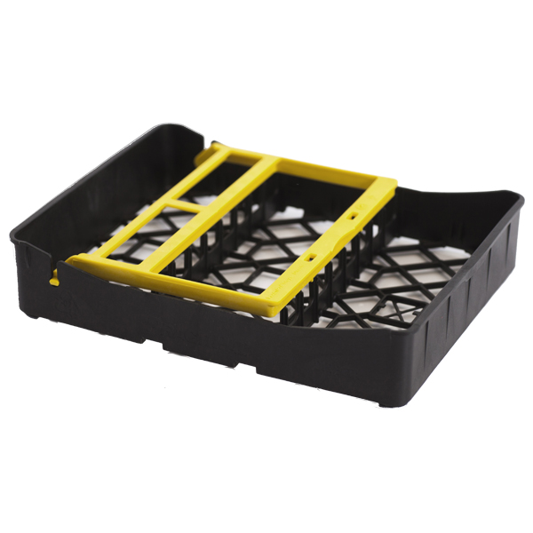 Til Practipal bakkesystem, bakke i ½ størrelse med plads til 9 instrumenter, med bøjle, der holder instrumenterne fast, gul. Autoklavepose varenr. 13458 passer til en ½bakke, autoklavepose nr. 28219, passer til to ½bakker.Clips til samling af bakker- ne kan bestilles på varenr. 627.