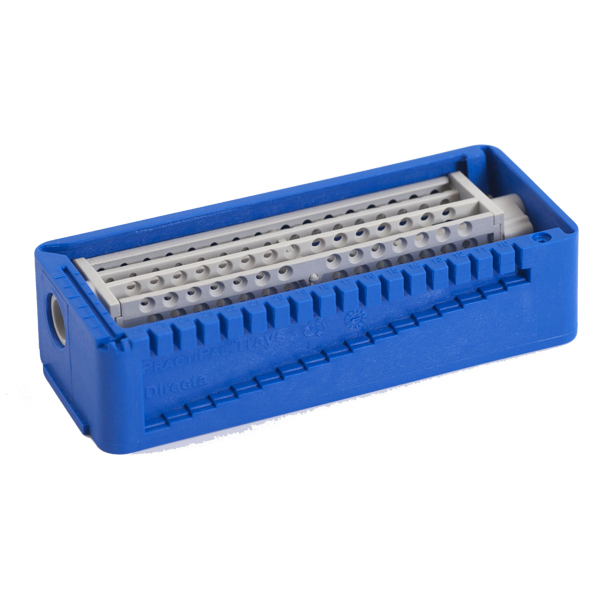Til Practipal bakkesystem, kombineret file/borholder/rodmålsblok med plads til 16 bor eller 32 file, blå.