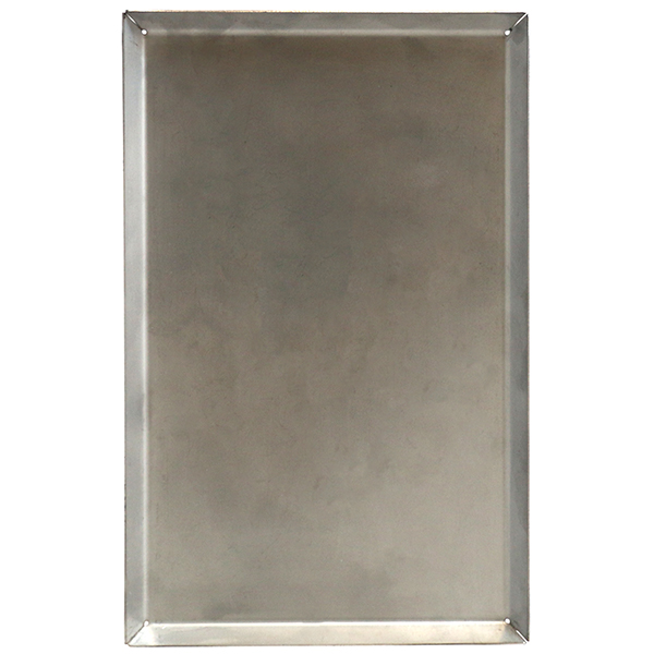 Posebakke i rustfri stål, str. maxi. Indre mål: 165 x 105 mm (angiver maks. længde pr. instrument) til ca. løse instrumenter. Ydre mål: 178 x 115 x 8 mm.