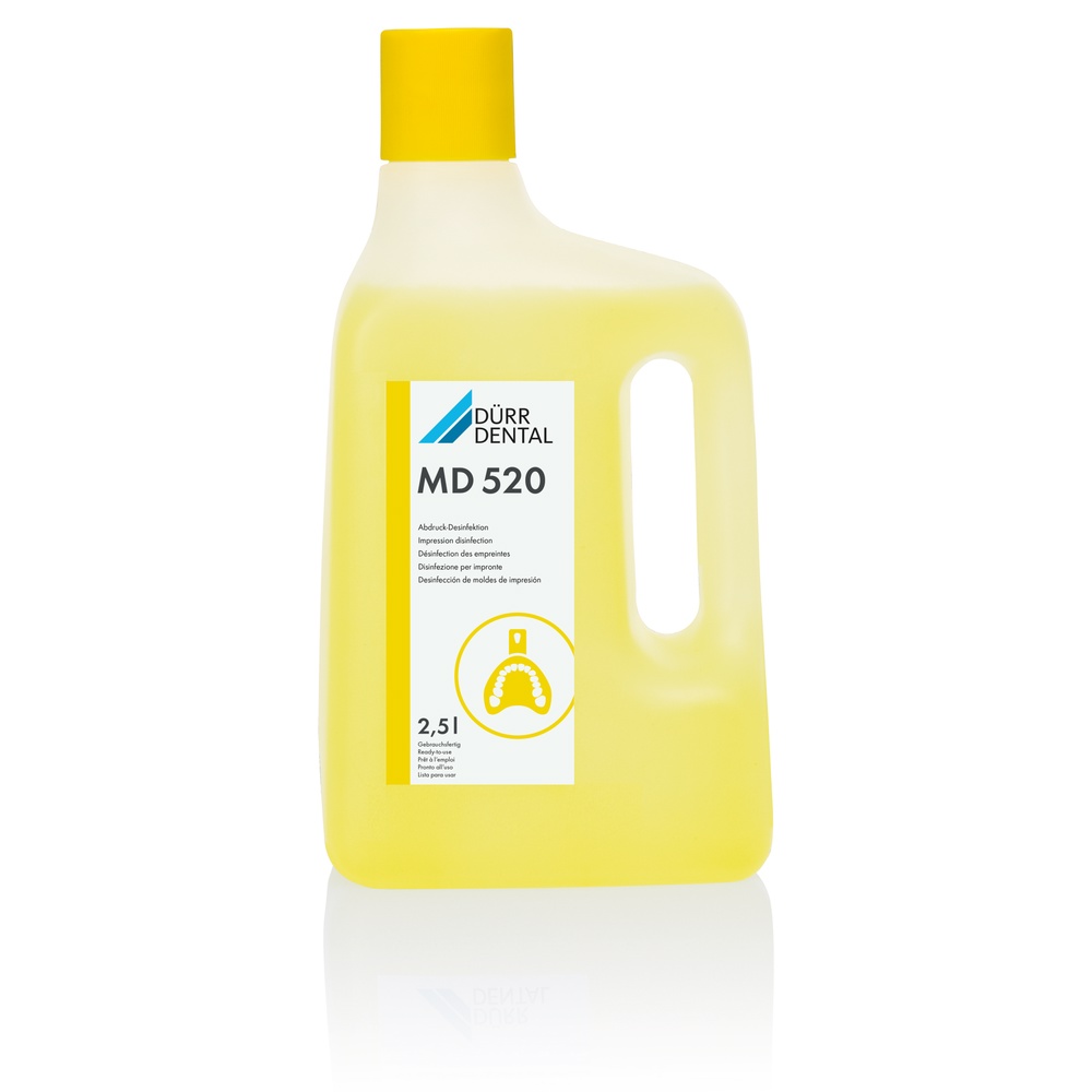 Brugsfærdig opløsning til desinfektion af aftryksmaterialer og tandteknisk arbejde. Desinfektionstid 5 min. Væske i brug kan anvendes i op til 7 dage (maks. 50 aftryk). Nu i ny flaske med mere ergonomisk greb og bedre hældetud.