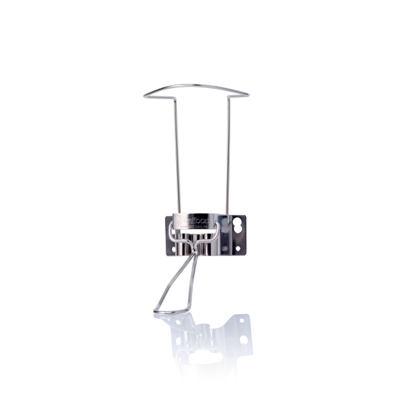 Albuedispenser i rustfrit stål til 1 liter hånddesinfektion i flaske med doseringskapsel, der vender på hovedet, passer bl.a. til Plum Standbag samt Antibac håndsæbe varenr. 12399