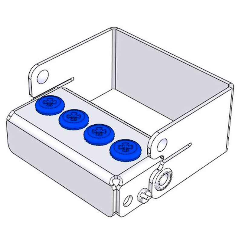 Borstander i rustfrit stål med bøjle. Anvendes til RA og FG bor, har plads til 4 bor. Med blå farvemarkeringspropper. Størrelse 4,5 x 2 x 3 cm.