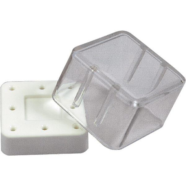 Borstander, autoklaverbar, hvid plast med transparent låg (som ikke kan autoklaveres), magnet i bunden af hullerne, til 8 FG/RA bor.