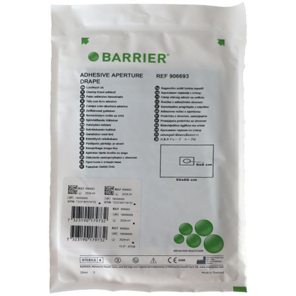 Sterilt hulstykke med klæb til afdækning, 50 x 60 cm, hulstørrelse ovalt 6 x 8 cm.
