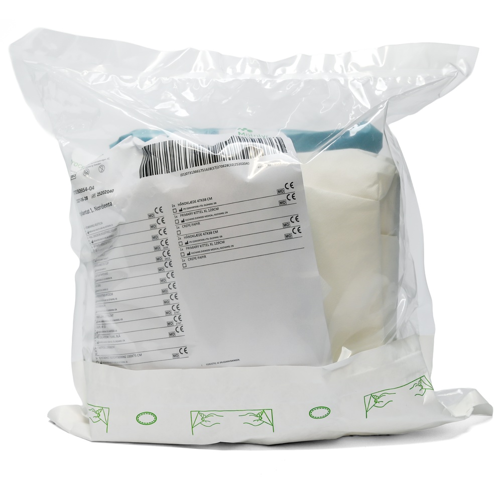 Indeholder patient- og bordafdækninger, 2 kitler, håndklæder, sugeslange, slangeovertræk, skyllesprøjte, skalpelblad nr. 15, plastskåle, gazetamponer og kompresser m.m. OBS: Surgitip kirurgisk sug ligger ikke mere i pakken - skal nu købes separat.