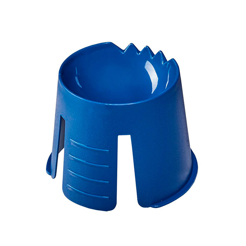Dappenbægre i polypropylen plast, med takket kant og flige til fastsætning på bakkekant, blå.