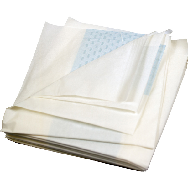 Dentalservietter, Tena Bib , hvide med lomme og bindebånd, M/L 37 x 68 cm, 2 lag papir med plast imellem.