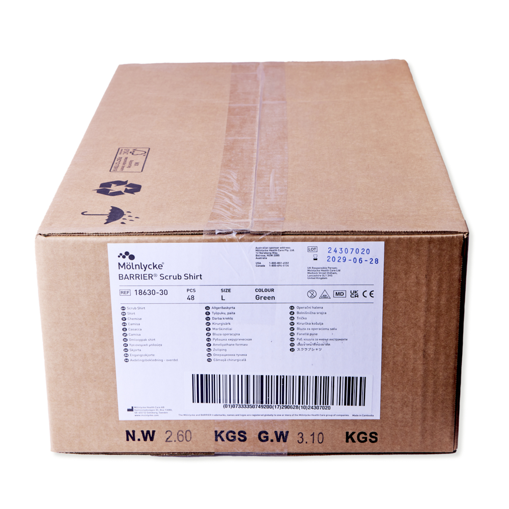 Barrier engangsuniforms-overdel L, grøn, 48 stk