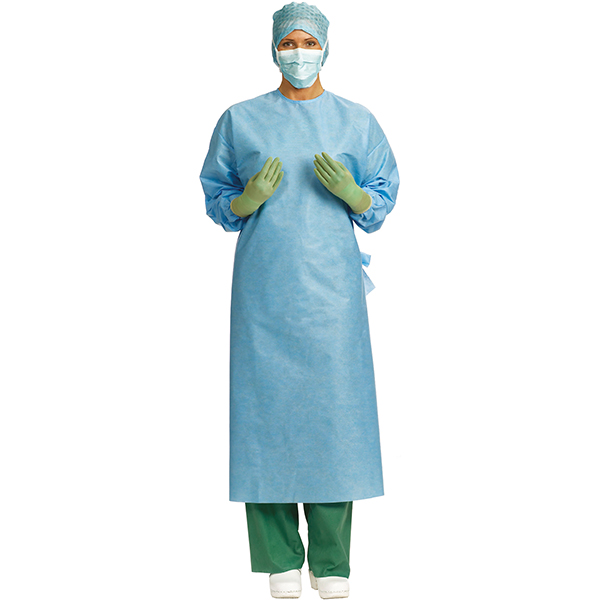 Barrier Primary operationskittel i blødt, komfortabelt og væskeafvisende materiale (polypropylen non-woven), manchetter ved håndleddet, justerbar lukning i nakke og om livet, overlappende ryg, blå, XL, 126 cm, sterilt pakket med 2 håndklæder.