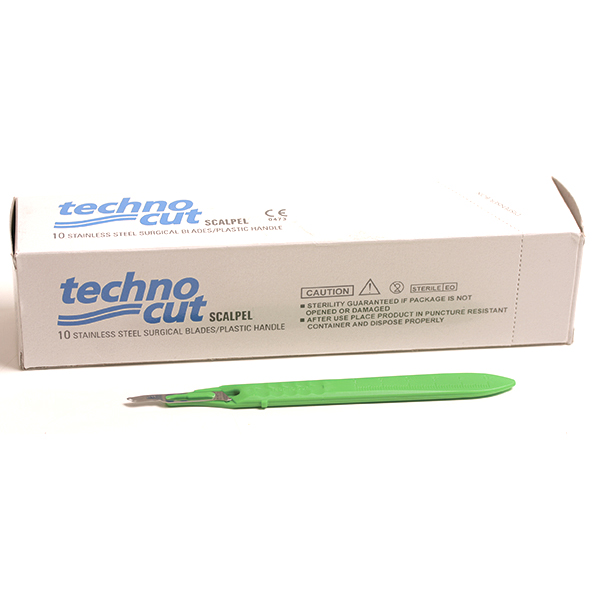 Skalpeller, grå plastskafter med rustfri blade, nr. 15, bådformet, sterile.