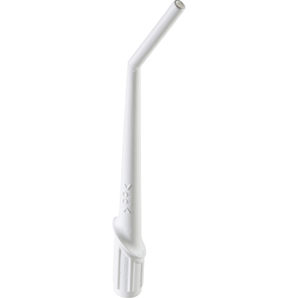 Kirurgisk tip, hvid plast med bøjet spids, 8 cm udv. Diam. 3,8 mm, autoklaverbar, anvendes sammen med Hygovac.
