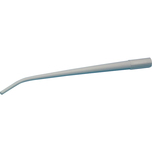 Kirurgisk sug, hvid plast med bøjet spids, 16,5 cm, udv. diam. 3,6 mm, anvendes direkte i adapteren (11mm/16mm). Kan autoklaveres, men bør ikke genbruges.