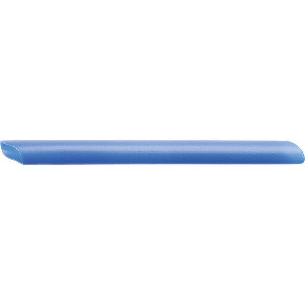Sug til tykke sugeslanger, 13,5 cm, blå, skråt afskåret i den ene ende og skråt/bølget i den anden ende.