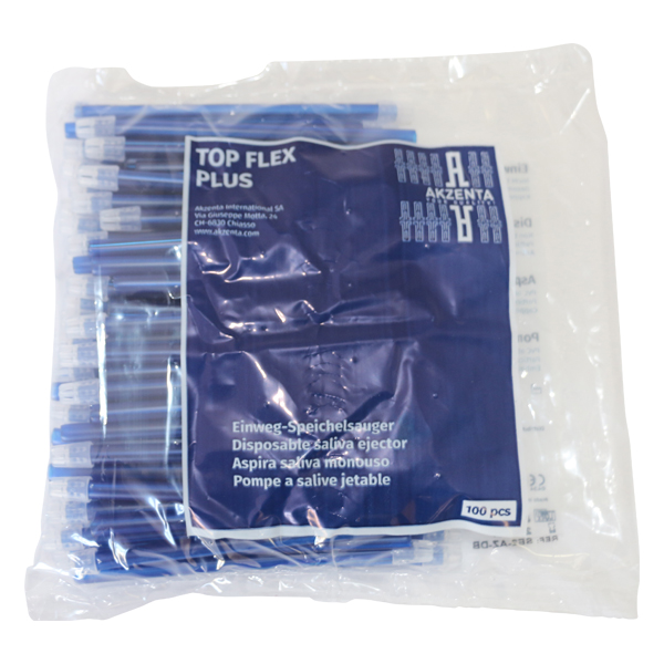 Spytsug til tynde sugeslanger, blød plast med bøjelig ståltråd og hætter, blå, 12,5 cm.