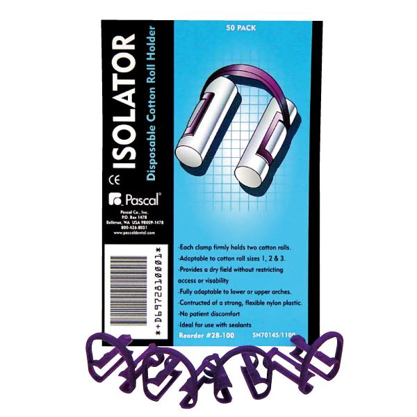 Engangsholdere til vatruller, passer til 2 vatruller og ligger i kinden, så vatrullerne holdes på plads både i over- og undermund, passer til vatruller str. 1, 2 og 3, i robust nylon-kvalitet, lilla.