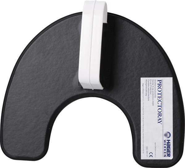 Røntgenkrave, overtrukket med hvidt, blankt plast, holdes på plads af patienten.