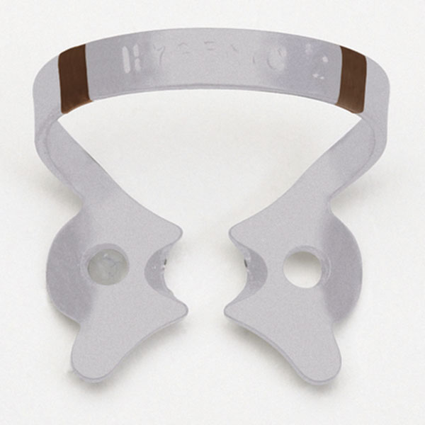 Fiesta kofferdamklamme med vinger, farvekodet, mat finish, nr. 2, til præmolarer og incisiver i overmunden, brun.