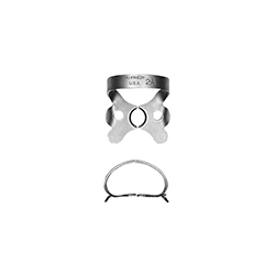 Kofferdamklamme med vinger, Satin Steel Alloy (blank), RDCM 2A, med flade kæber til præmolarer i UK og OK.