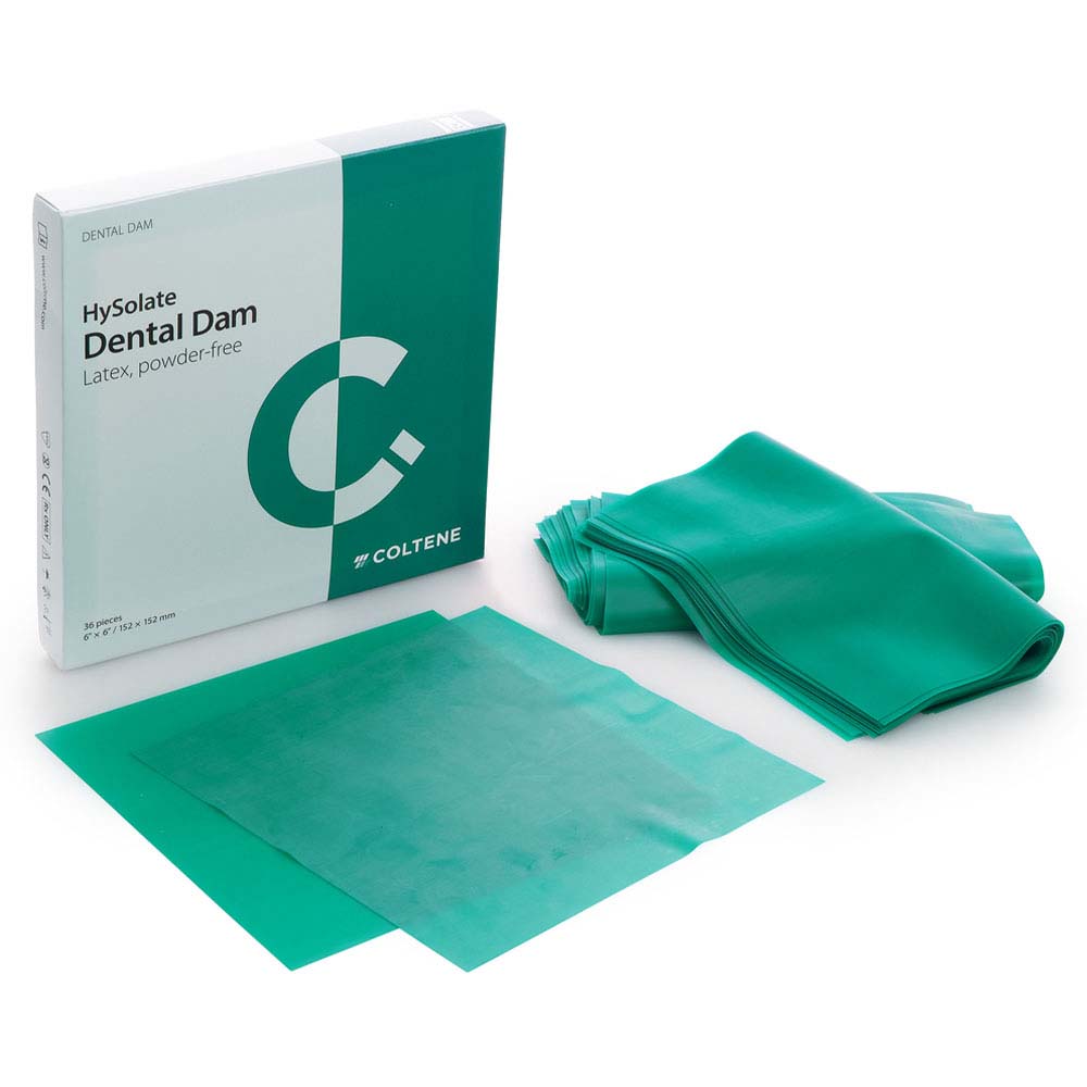 Kofferdam i stykker, ekstra elastisk, pudderfri latex, medium, grøn, 15,2 x 15,2 cm.