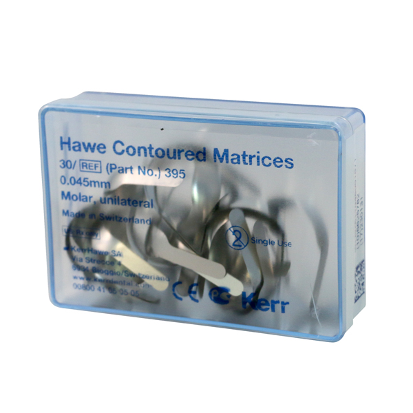 Forkonturerede metalmatricer til almindelige matriceholdere, 0,045 mm, nr. 395, molar med 1 bue (i højre side).