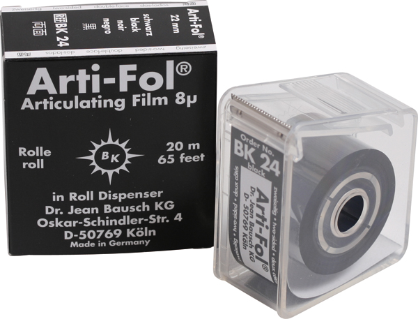 Okklusions-/artikulationskontrol, folie, sort, m. farve på begge sider.