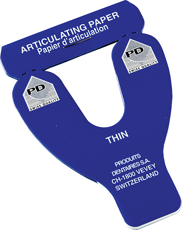 Papir til okklusions-/artikulationskontrol, hesteskoformet, blåt, 80 my. Papiret er dobbeltsidet, dvs. afgiver farve på begge sider.