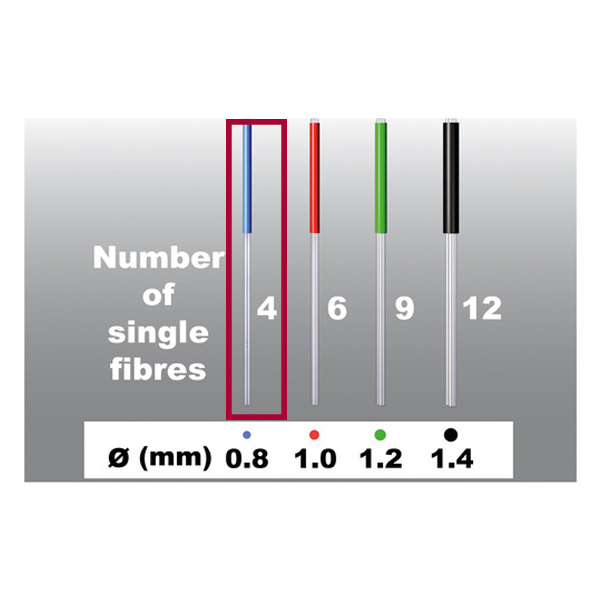 Glasfiberforstærkede komposit-rodstifter, hvor hver rodstift består af flere tynde individuelle stifter, hvilket giver bedre tilpasning til rodkanalens morfologi, til brug ved opbygning af rodbehandlede tænder, perfekt egnet til større rodkanaler, refill med stifter nr. 4 str. 0,8 mm, der hver består af 4 tyndere stifter.