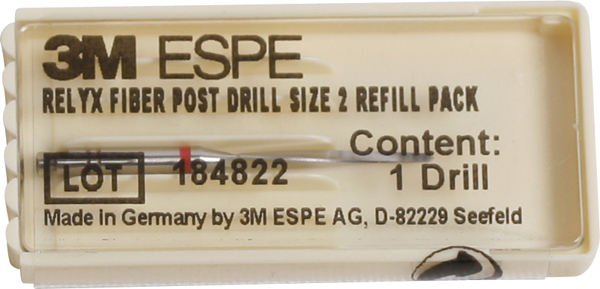 Bor til forboring ved brug af RelyX Fiberpost stifter, str. 2, 1,6 mm. Rød.