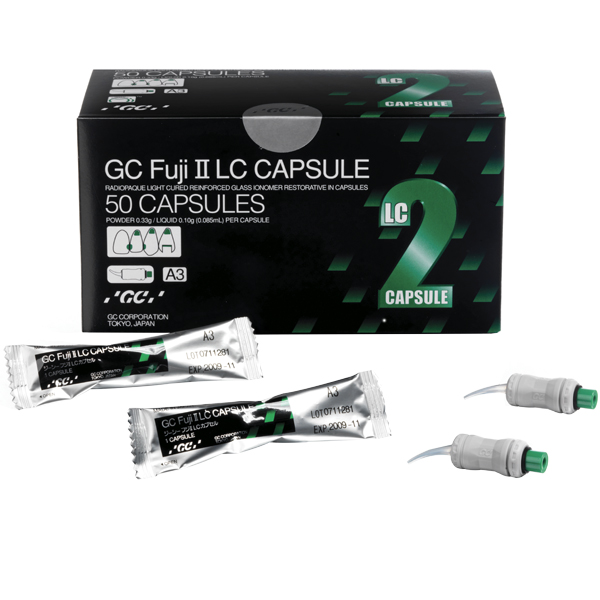 Glasionomercement, lys- og kemiskhærdende, til klasse III og V fyldninger, primære tænder mm, A3, i kapsler.