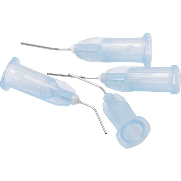 Blå appliceringsspidser med bøjet, stump kanyle til Ana Etching gel. 0,5 mm x 13mm