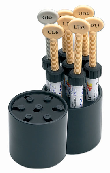 Tilbehør til Ease-It varme-enhed, kombiholder til skruesprøjter og kapsler til kompositvarmer. Varmeenheden kan indstilles til at opvarme til mellem 40 og 60 grader C, sikrer at kompositten varmes op til den valgte temperatur.