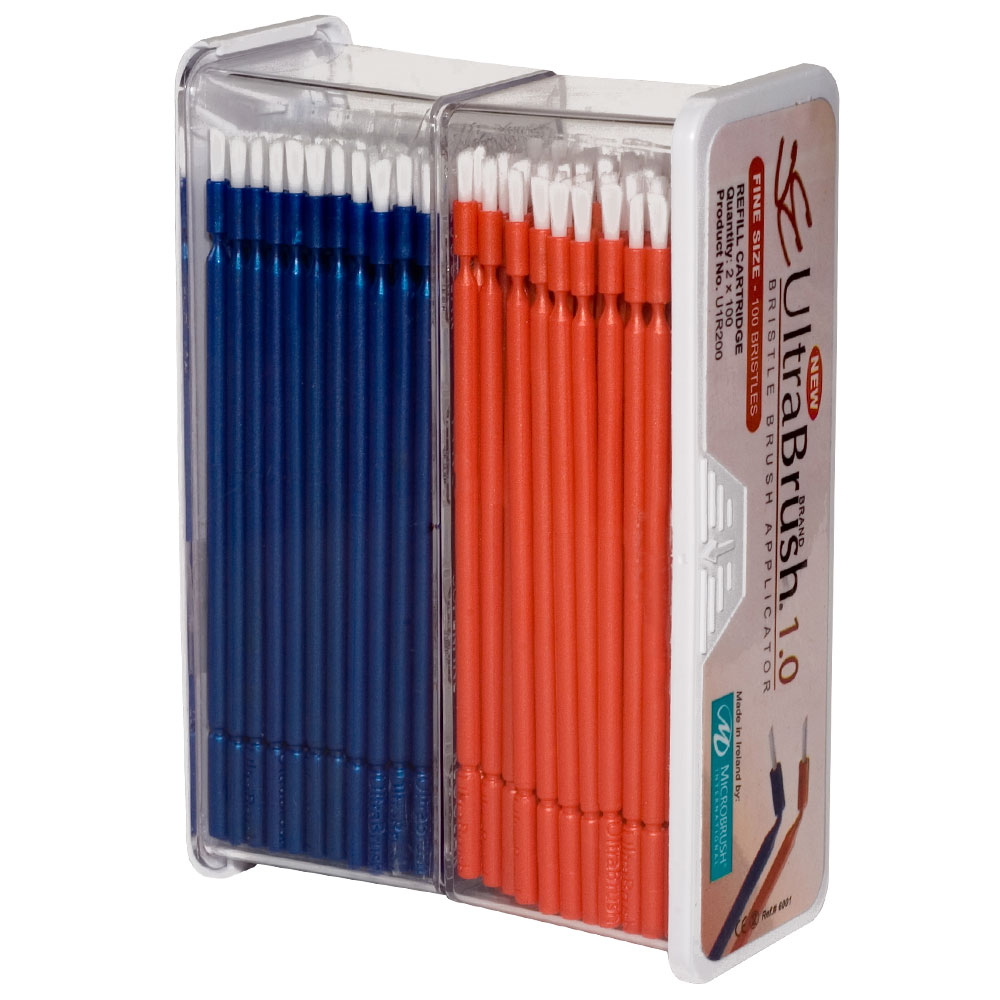 Pensel med samme skaft som Microbrush, fin, orange og blå, refill i æsker.