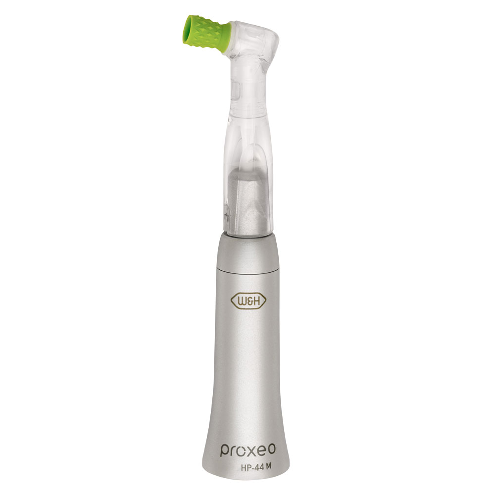 Proxeo håndstykke, HP-44 M, uden spray, skal anvendes med plastik engangs profylaksehoveder. længde: 6,4 cm, vægt: 57 g. Udveksling 4:1.