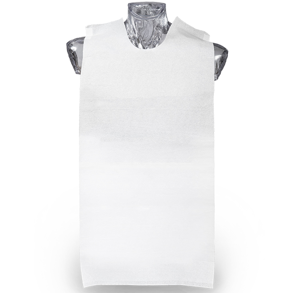 2-lags væsketæt forklæde bestående af et lag ikke-klorbleget papirmateriale med høj absorption og en biobaseret film, som sikrer at forklædet er fuldt bionedbrydeligt, FSC certificeret. Forklædet har tapefæste ved skulder og i taljen, hvilket gør det let at skifte forklæde. Beregnet til beskyttelse af behandleren, men kan også bruges til patienten, 37 x 76,5 cm hvid.