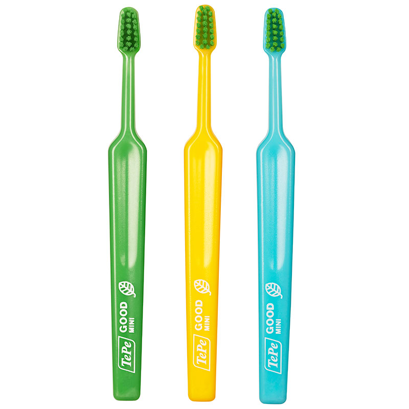 Tandbørste i 96% bio-baseret plast udvundet af sukkerrør, hvilket mindsker CO2-forbruget i atmosfæren. Til børn fra 0-3 år, med lille, konisk børstehoved, som kan vinkles, afrundede børstehår samt ergonomisk skaft, pakket enkeltvis i cellofan. Mini, x-soft. Fremstillet udelukkende ved brug af grøn energi, delvis fra TePes eget solcelleanlæg. Børstehårene er fremstillet af ricinusolie og skaftet er fremstillet af sukkerrør.