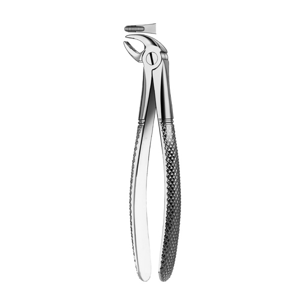 Carl Martin ekstraktionstang, pædo, til incisiver og hjørnetænder. Med relief-riller i kæberne og med rillet greb.