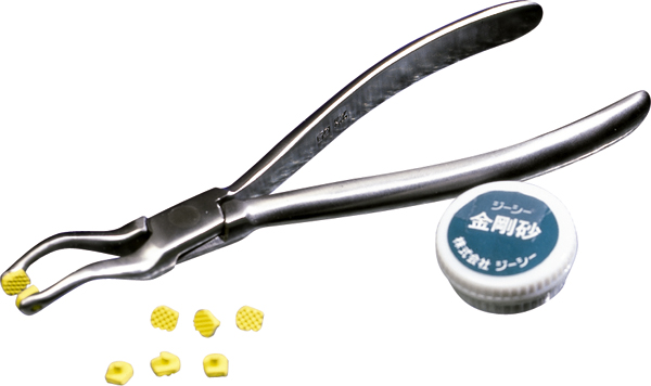 Sæt med tang, 50 silikoneplader og "emerypulver", som øger adhæsionen.