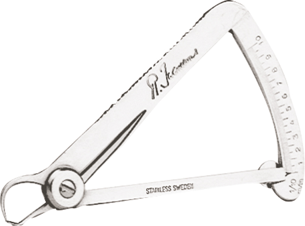 Måleinstrument, måler materialetykkelse af kroner i 1/10 mm, rustfri.