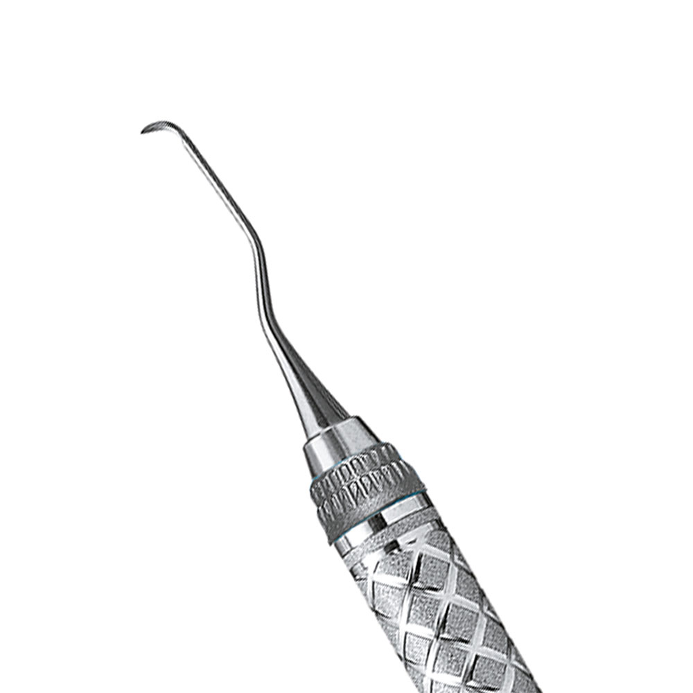 Curette, Gracey 1/2 Mini Five, til fortænder, grå markering, EverEdge 2.0 med mere end 60% skarpere skær, kan slibes da instrumentet har samme metallegering i hele den arbejdende del, Mini Five med lang hals som After Five men kortere skær for dybe tandkødslommer ved smalle rødder, med kraftigt EverEdge greb.