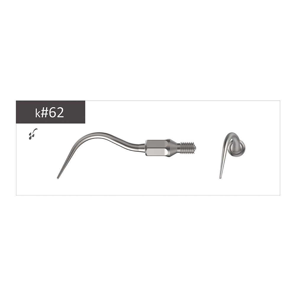 Paro spids til Kavo Sonicflex 2000N, til blid rensning af tandkødslommer, fra 1. og 3. kvadrant lingualt og fra 2. og 4. kvadrant bukkalt,, glat med afrundet spids, lang højredrejet, k62, længde på spidsen 27,4 mm. Passer også til Sonicflex 2000L, 2003N og 2003L.