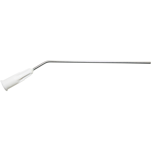 Sterile skyllekanyler, engangs, luer, stumpe med buk, med hvidt gevind 1,4 x 70 mm. Sterilt enkeltpakkede.