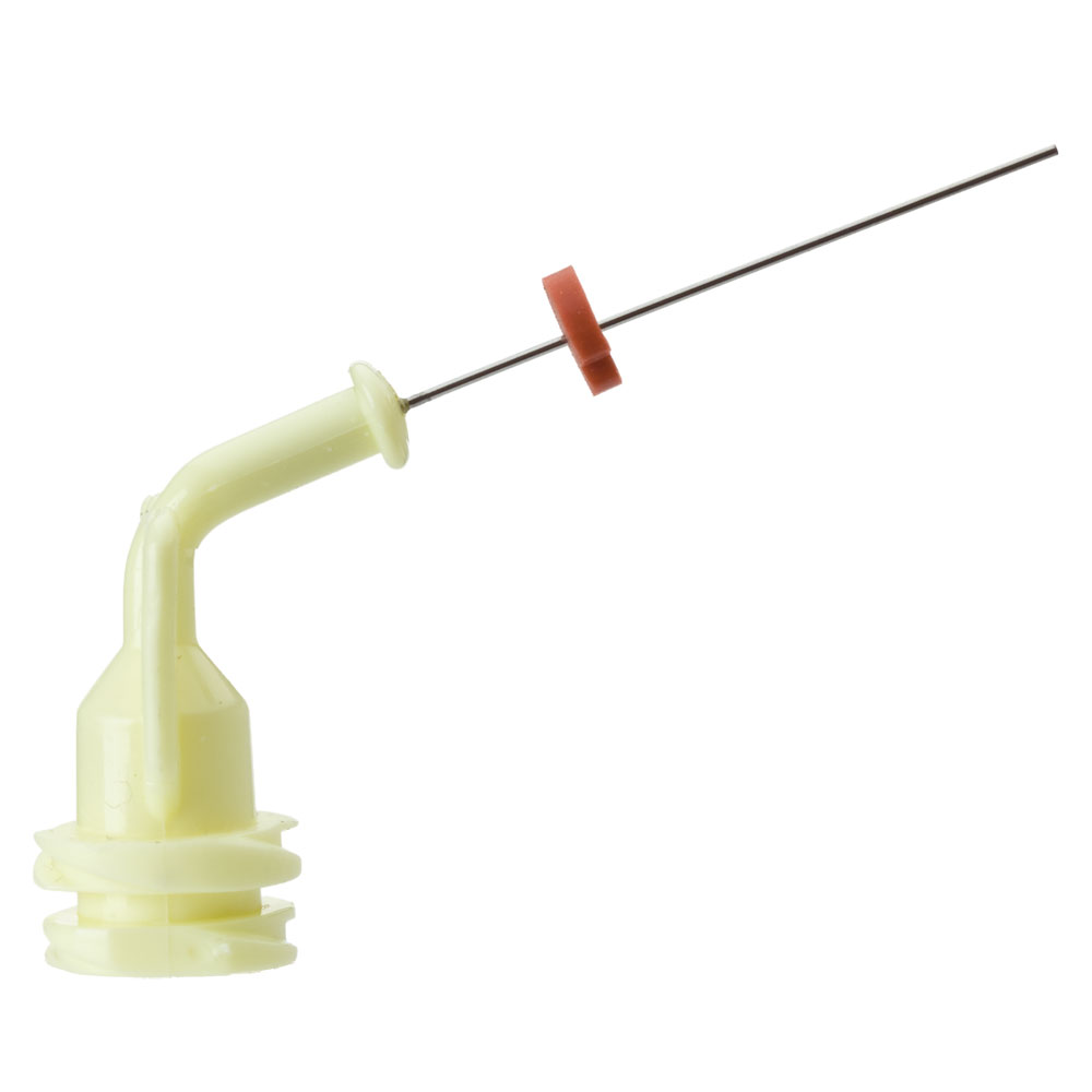 Usteril engangs skyllekanyle i rustfrit stål med afrundet tip og bukket plast Lok-Tite gevind. Metalkanylen er blød og fleksibel i den apikale del. Anvendes til rodskylning/applicering af diverse væsker eller gel Passer til alle skyllesprøjter med luer/luer-lock gevind. 29G (Ø: 0,33 mm), 21 mm, lysegul.