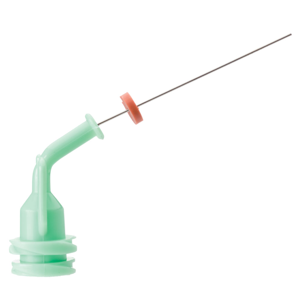 Usteril engangs skyllekanyle i rustfrit stål med afrundet tip og bukket plast Lok-Tite gevind. Metalkanylen er blød og fleksibel i den apikale del. Anvendes til rodskylning/applicering af diverse væsker eller gel. Passer til alle skyllesprøjter med luer/luer-lock gevind. 29G (Ø: 0,33 mm), 27 mm, lysegrøn.