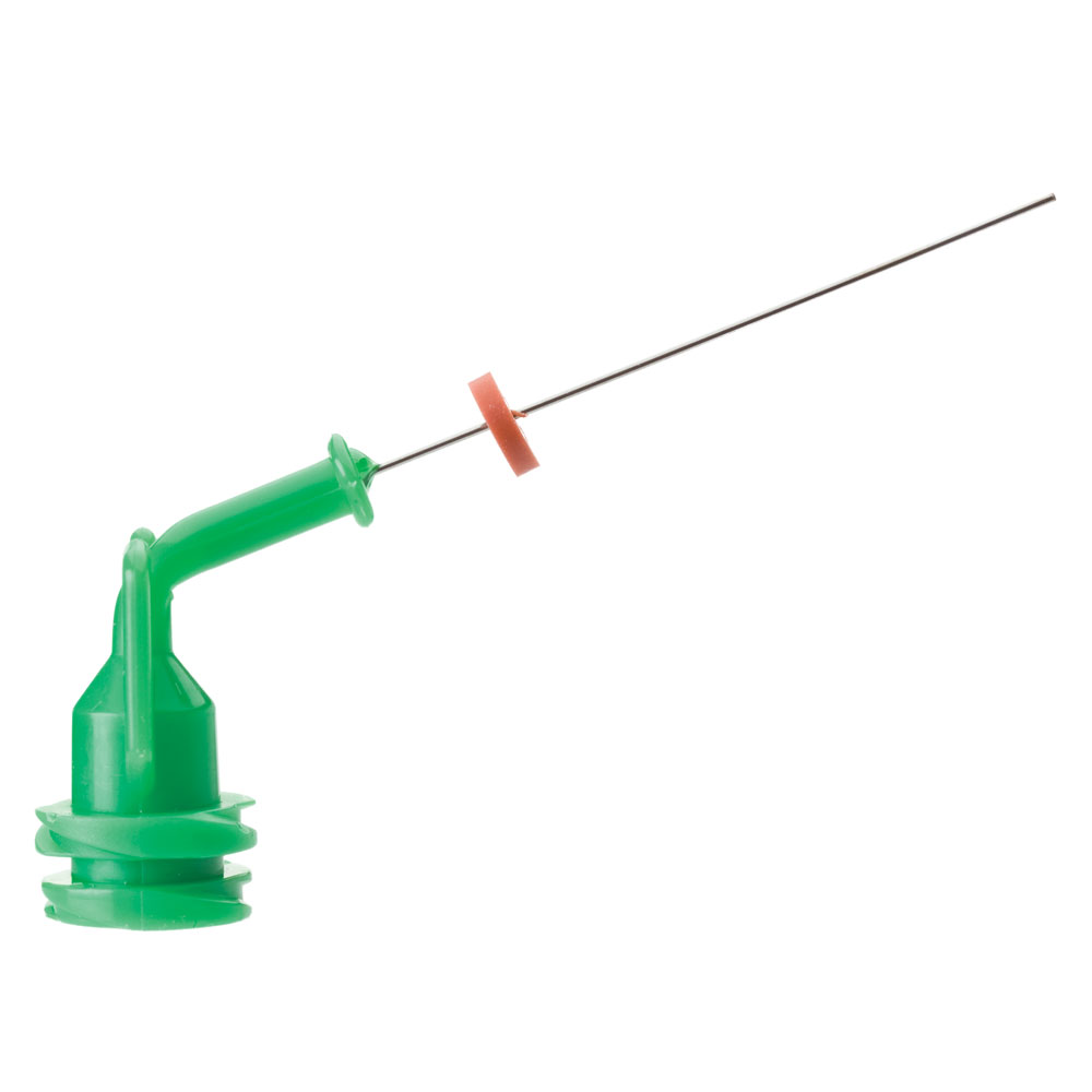 Usteril engangs skyllekanyle i rustfrit stål med afrundet tip og bukket plast Lok-Tite gevind. Metalkanylen er blød og fleksibel i den apikale del. Anvendes til rodskylning/applicering af diverse væsker eller gel. Passer til alle skyllesprøjter med luer/luer-lock gevind. 30G (Ø: 0,30 mm), 27 mm, grøn.